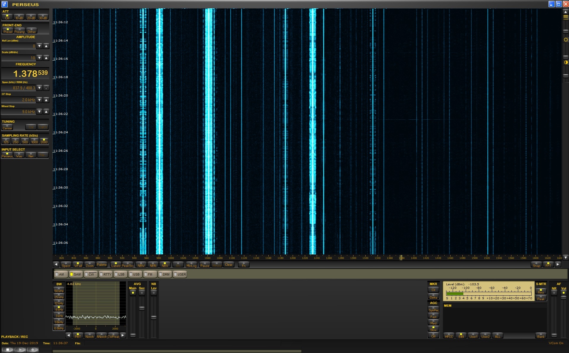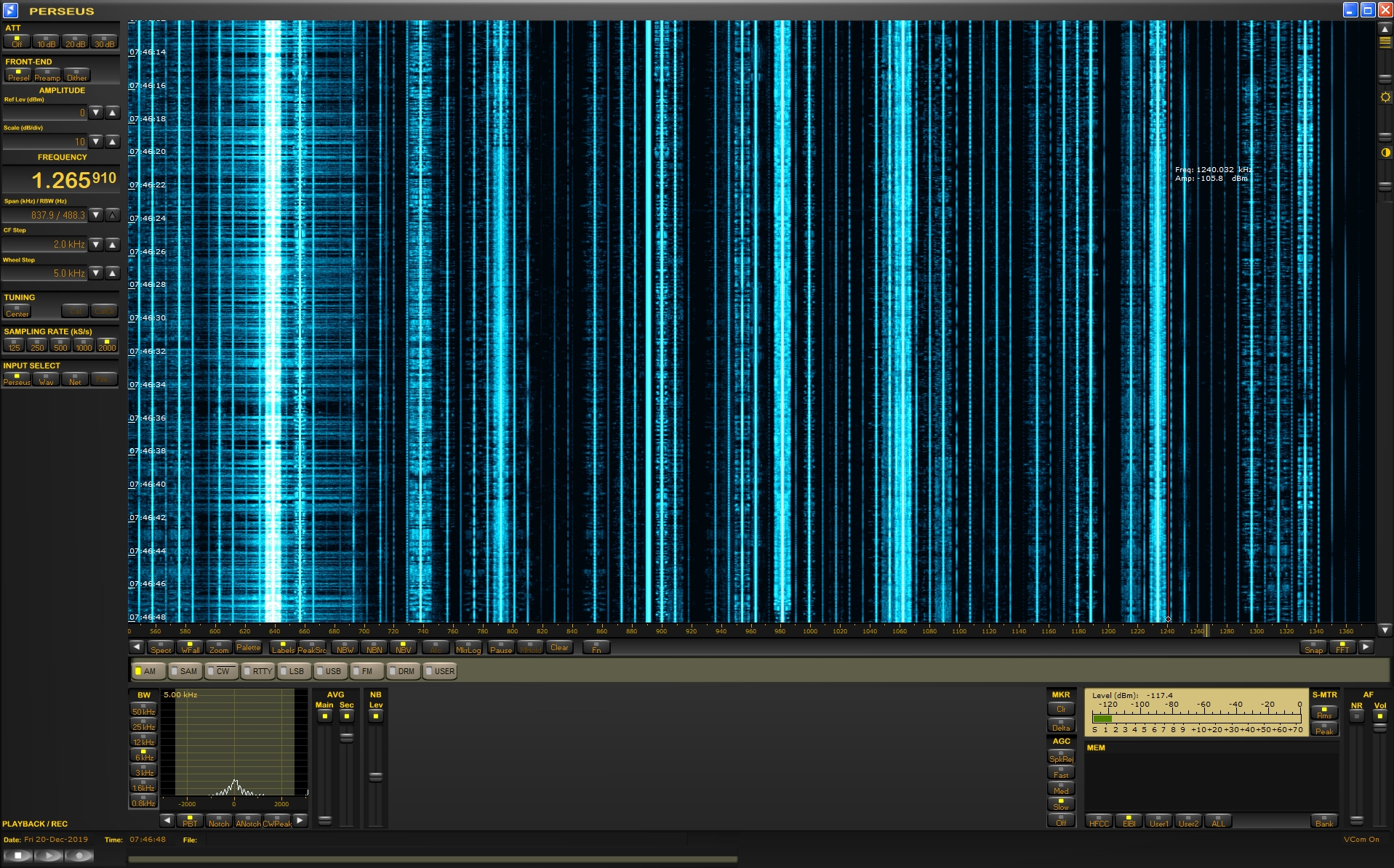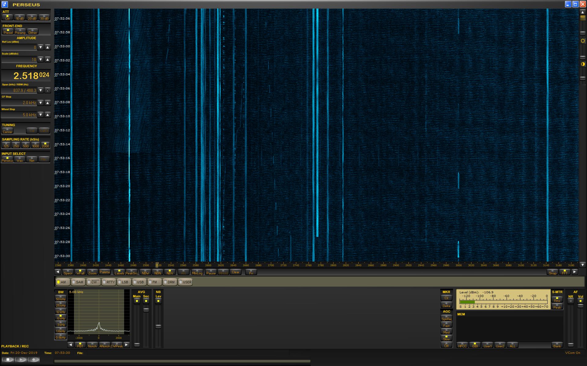Polední spektrum v mém QTH.